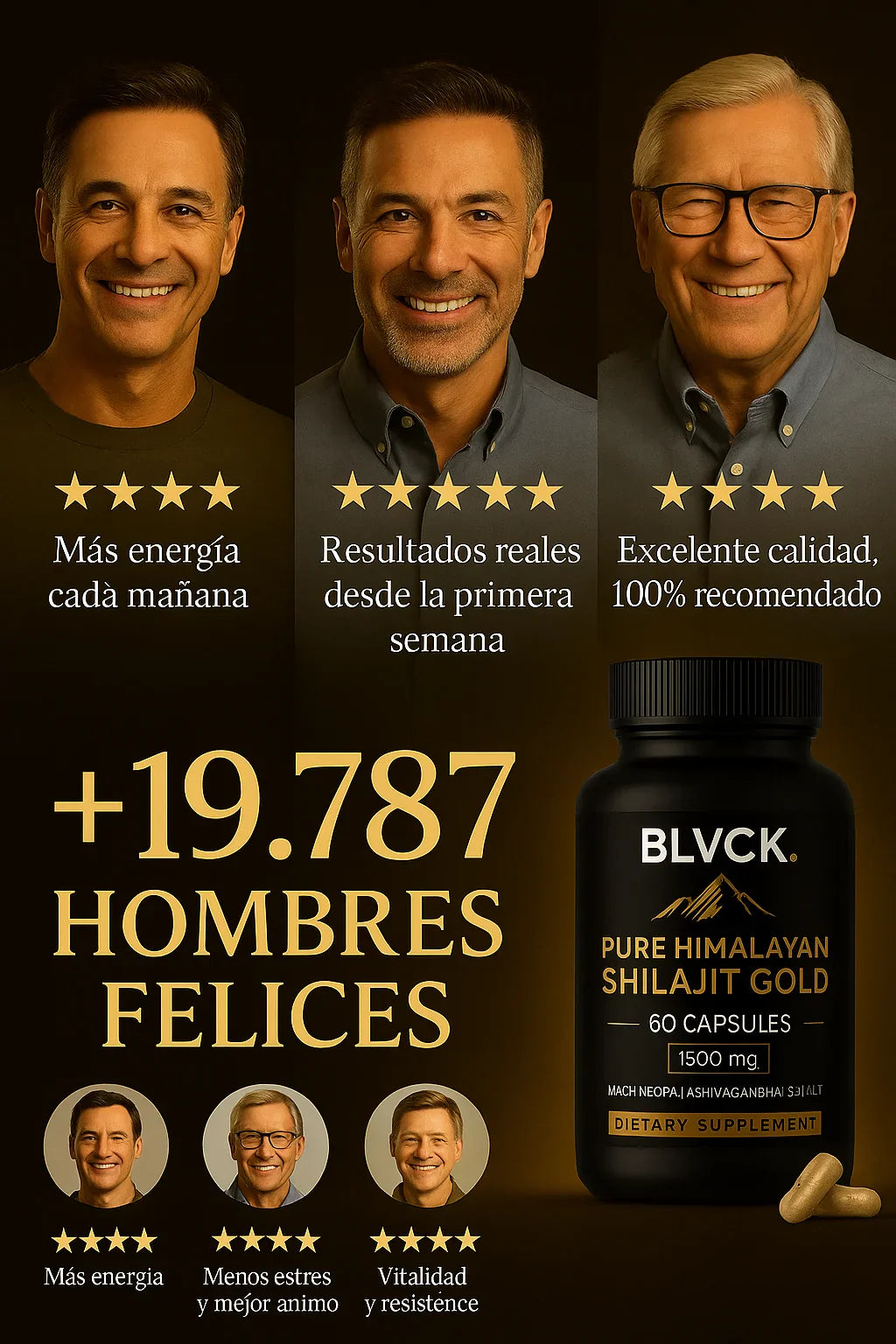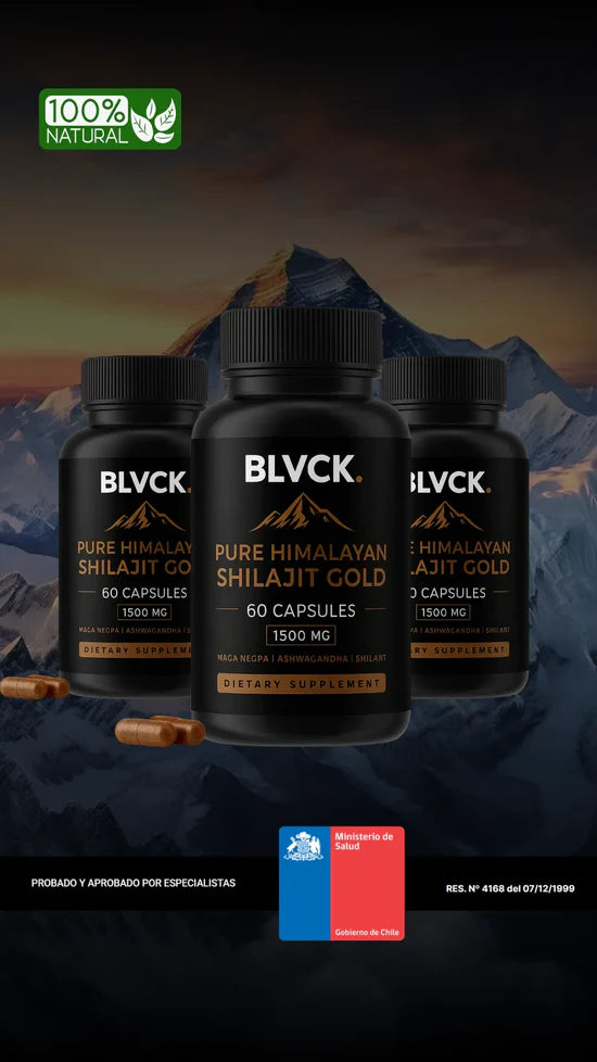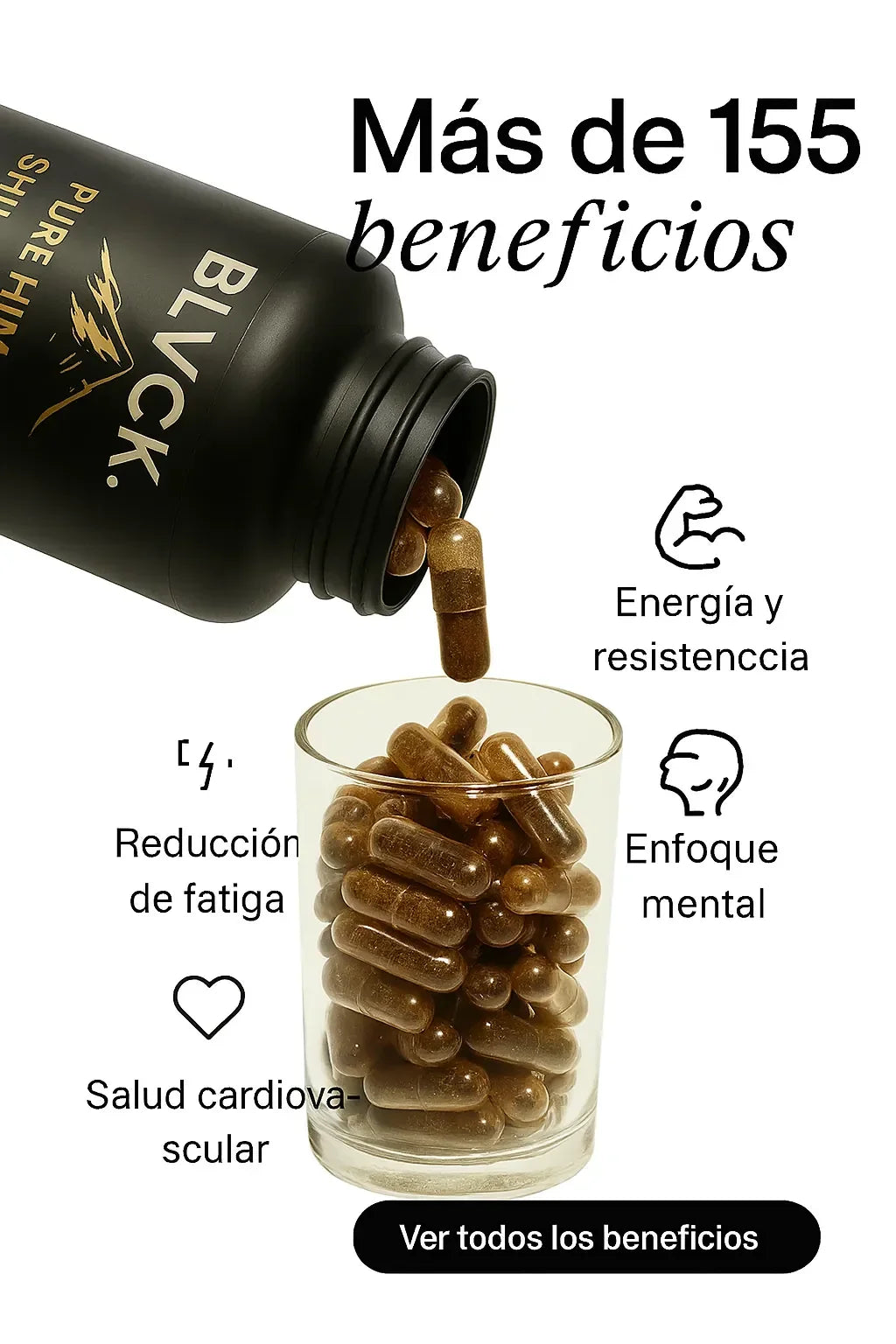 Toma2 cápsulas de Shilajit Blvcken lamañanacon un vaso de agua.