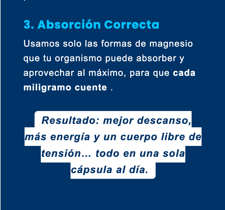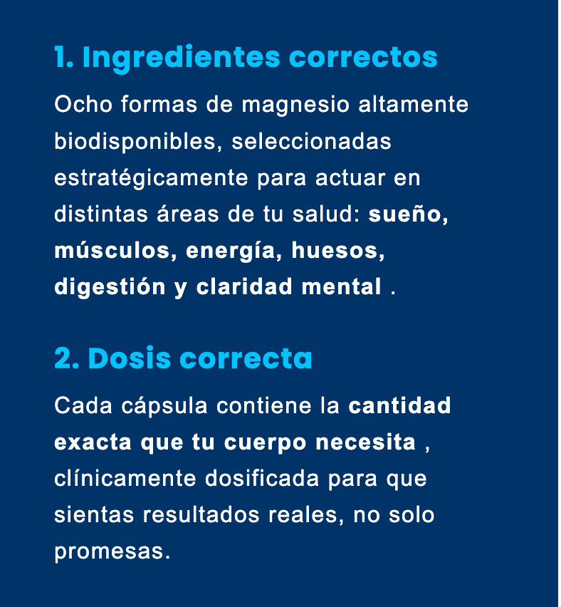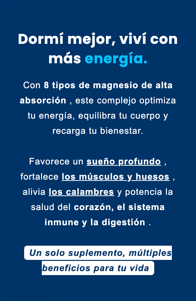 | Energía, sueño profundo, menos calambres, mejor concentración y digestión. | ||
